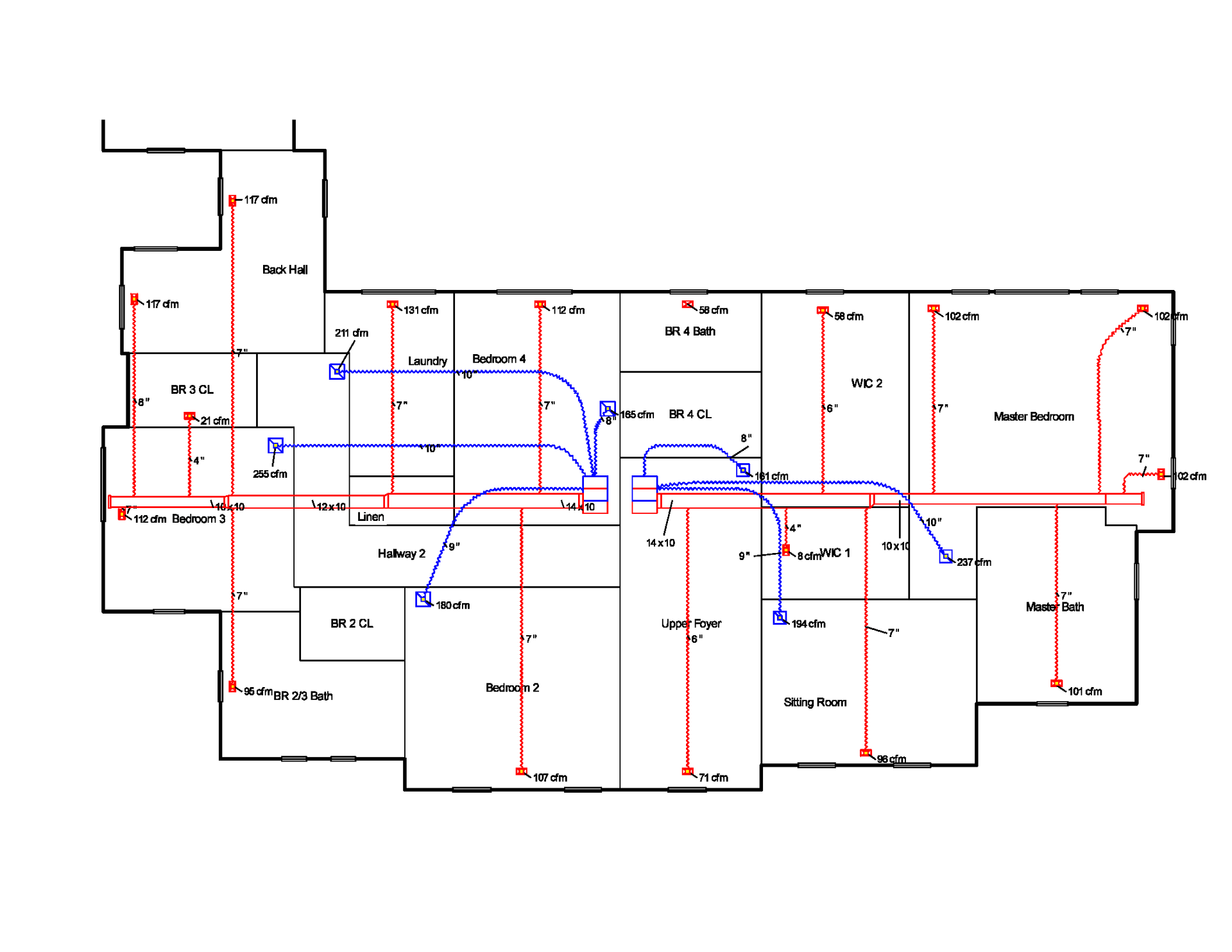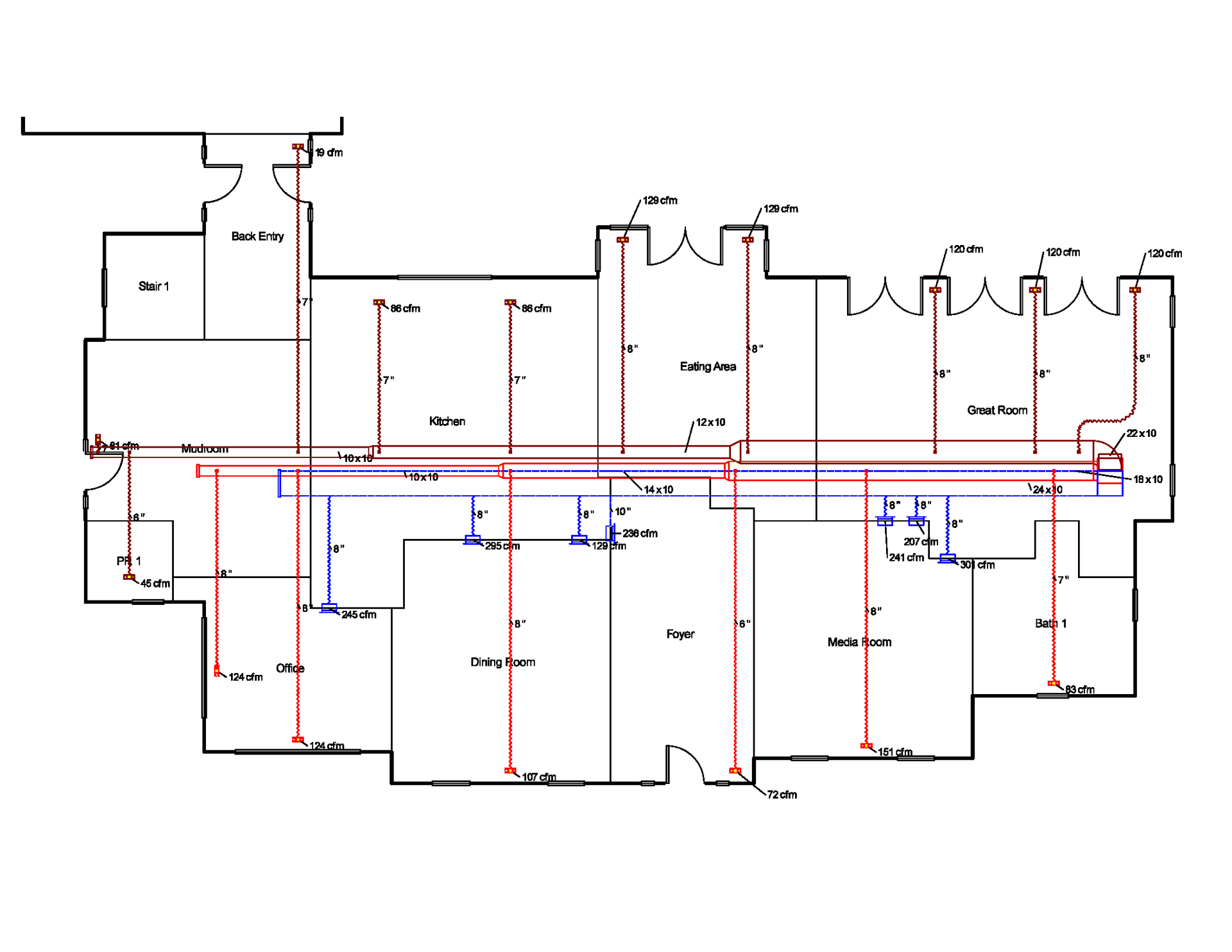 After performing a Manual J and S calculation using WrightSoft©, the next step is to create a basic duct layout which is used for Manual D documentation.